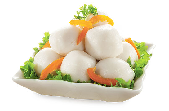 白鱼丸采用最高质量的鱼浆作为原料,呈现出天然的白色。