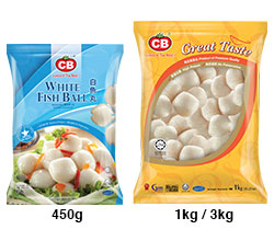 白鱼丸采用最高质量的鱼浆作为原料,呈现出天然的白色。