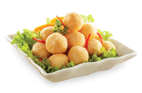 金黄的炸鱼丸外脆内软,是火锅料理中最好的搭配。