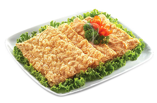 特大的鱼肉酿腐竹包含鲜嫩多汁的鱼浆,外层酥脆的腐竹皮完美衬托出内在鱼浆的鲜美,不管是一大片吃还是切片吃它都会是酥脆食物喜好者的最爱。